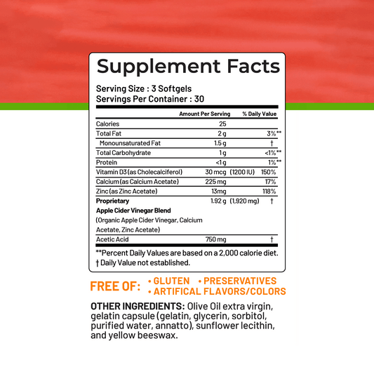 Liquid Apple Cider Vinegar in Softgels- Weight Control, Detox, Digestion - High Bioavailability, The Most Advanced Apple Vinegar Yet! (180)