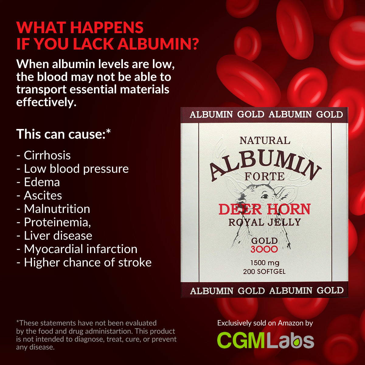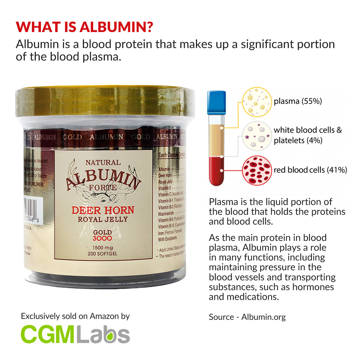 알부민은 생체세포나 체액 중에 넓게 분포되어 있는 단순 단백질로 신체에 있어 혈액 삼투압조절, 독성물질 중화 및 운반, 신체근육에 에너지를 공급하는 기능을 합니다. 알부민이 부족할 시에는 노폐물이 몸 안에서 제거되지 않아서 부종 등의 현상이 생길 수 있습니다. 알부민은 간에서 생성되는데, 알부민이 부족하면 간경화, 간염, 간암 등의 간질환을 초래합니다. 신장 기능 이상 등으로 알부민이 빠져나가는 경우 알부민을 섭취하게 되면 오랜 투병, 각종 암, 만성 질환, 또한 알부민이 부족하여 간질환이 있는 환자에게 도움이 됩니다. 내추럴 알부민 포르테는 품질이 우수한 녹용의 상대 부분만을 이용했습니다.